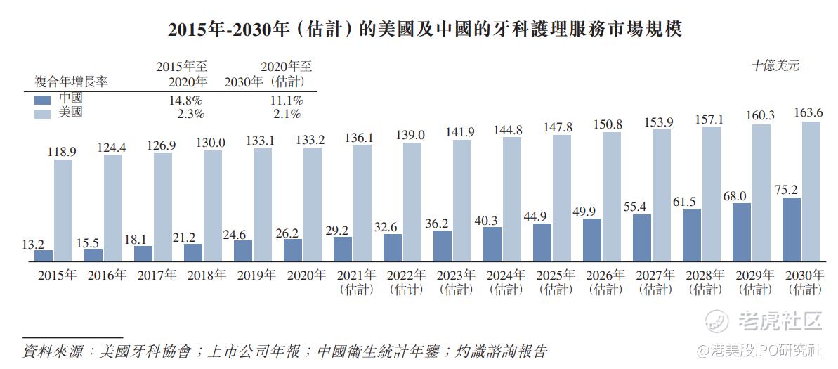 根据灼识咨询报告,按服务收入计,中国牙科护理服务市场由2015年的132亿美元增至2020年的262亿美元,复合年增长率为14.8%,并有望于2030年达到752亿美元,2020年至2030年间的复合年增长率预计为11.1%