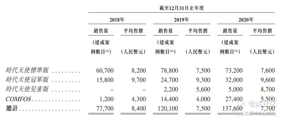 目前销售四种隐形矫治器,包括时代天使标准版、时代天使冠军版、时代天使儿童版,以及COMFOS