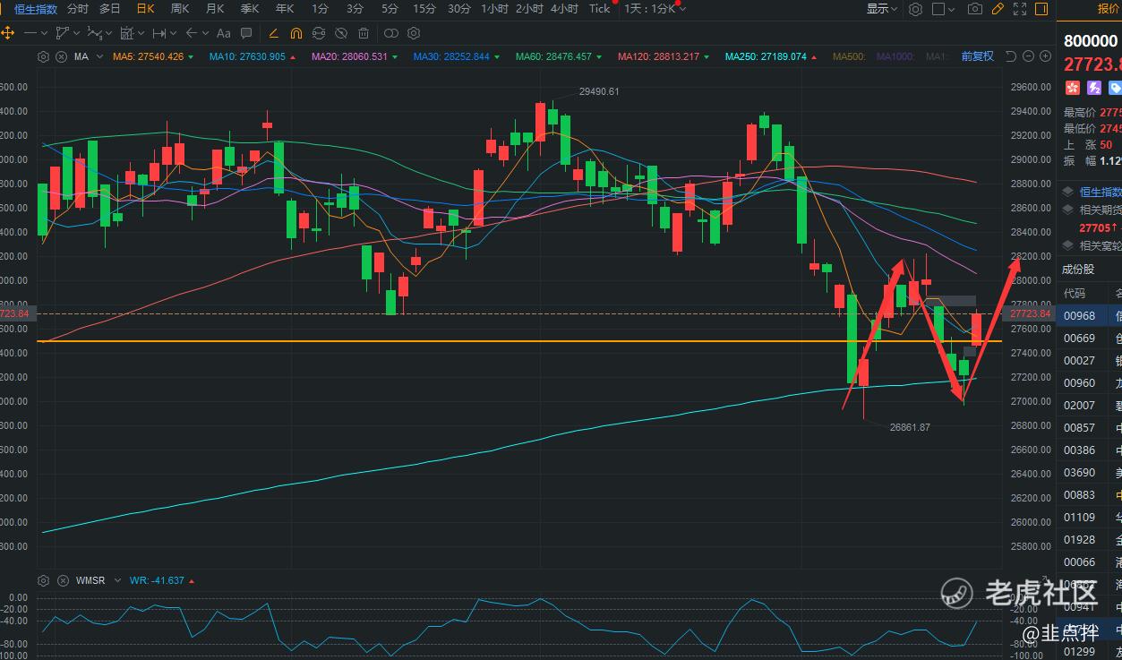 2、$敏华控股(01999)$ :敏华近半个月回调得比较多,又是熟悉的位置,坐等反弹,对于敏华我的观点还是不变,继续看好,还是那句话只要能耐住性子赚慢钱的话,新高基本上是确定的(这个观点不变,如有特殊情况我会在说。)