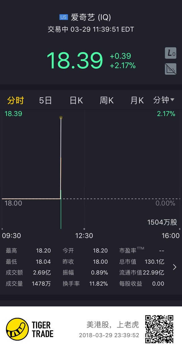 历经八年长跑,中国版的“Netflix”—$爱奇艺(IQ)$终于实现在美国的IPO。上市发行价$18,融资规模22.5亿美元。首日开盘价$18.2.