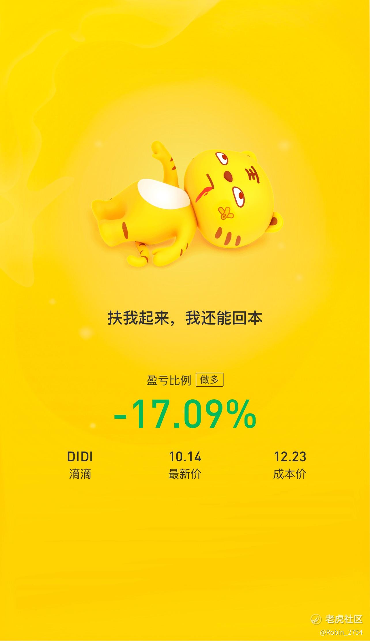 $滴滴(DIDI)$抄底抄了个半山腰,相信资本背后贪婪的力量(骂归骂,赚钱的事情不能情绪化)必定能扭转局势,再跌再买。以此贴为证,一年之后来挖坟。