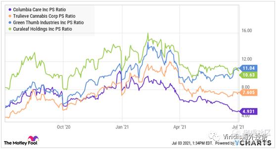 与较大的多州运营商相比,Columbia Care的价格与销售比率约为5,有一定的发展潜力。