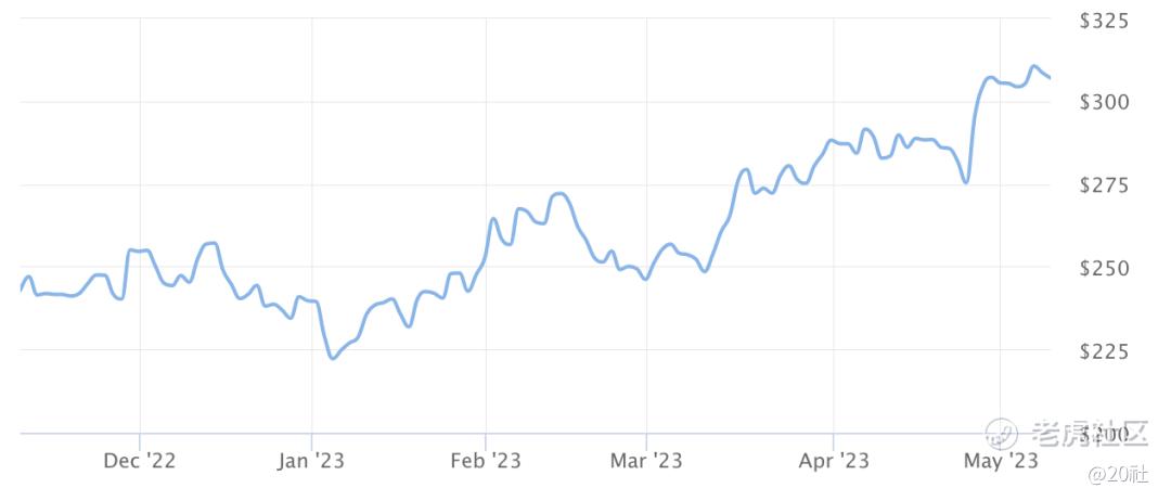 去年底ChatGPT进入大众视野以来,微软股价走势