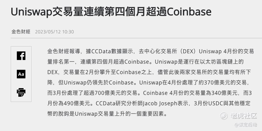 另一方面,去中心化交易所Uniswap也威胁着COINBASE在币圈中第二大交易所的地位。