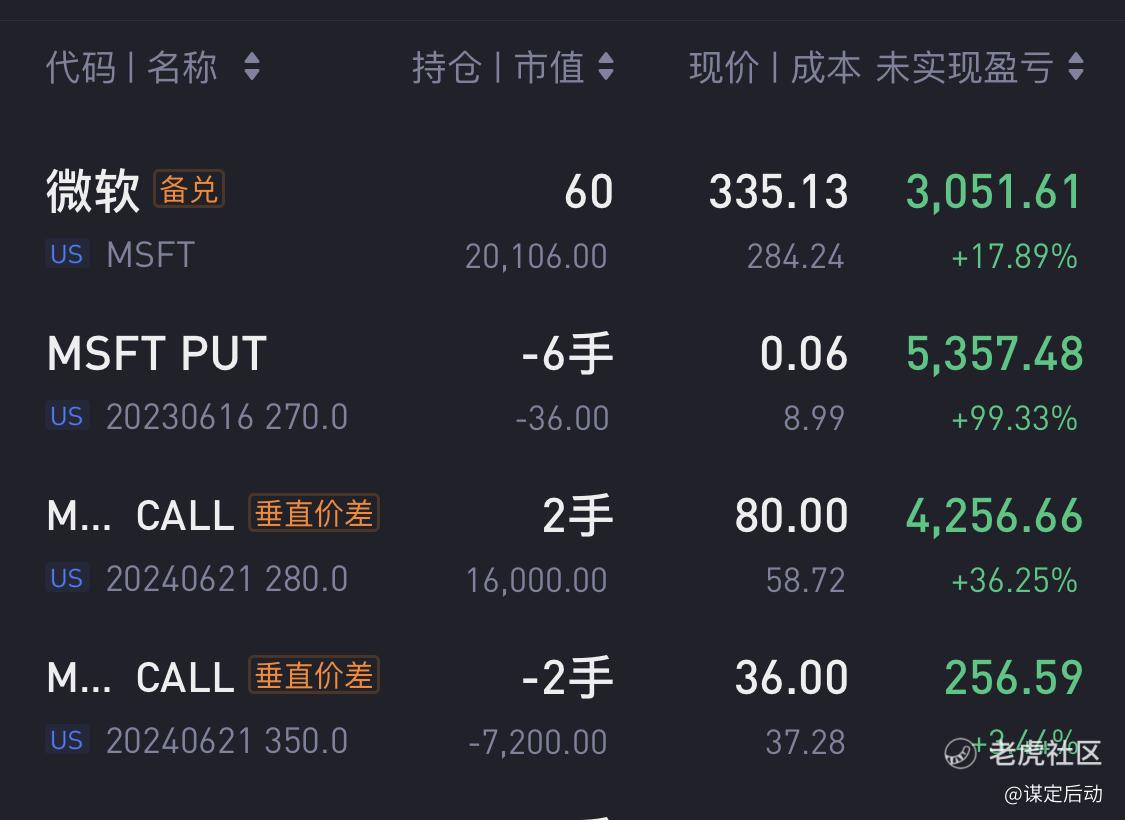 4)$微软(MSFT)$ 【仓位20%】:绝不追高
