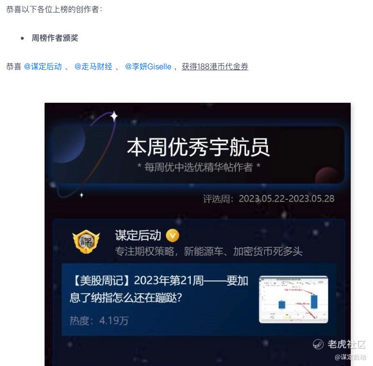 再次获得老虎社区“优秀宇航员”奖,谢谢各位虎友一直以来的捧场和鼓励。