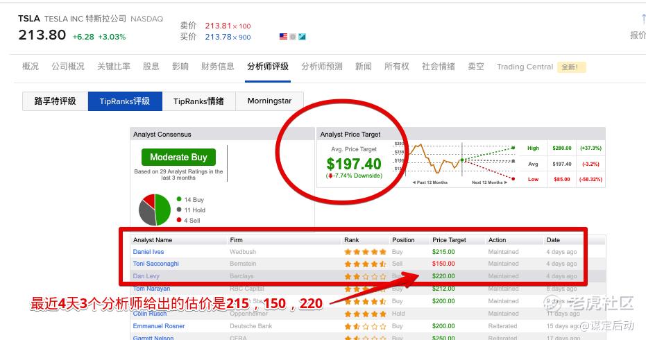 分析师给出的12个月后平均估价在197,低于特斯拉星期五收盘价的213的5%左右,意味着目前特斯拉的估价已经Price In了一年以后的盈利预期。因此这个阶段我是不会去追高的。