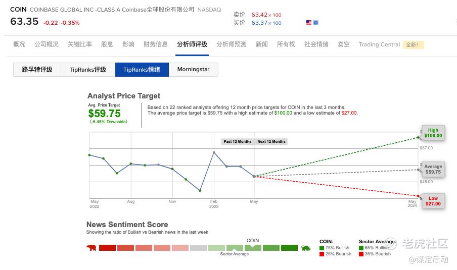 分析师们对于COINBASE的展望并不乐观,12个月后的最高估价也只给到100,平均只有59。因此不大看好COINBASE下半年的走势,在这段时间里我会通过卖出CC把仓位降下来,CC行权价会在70-75之间。