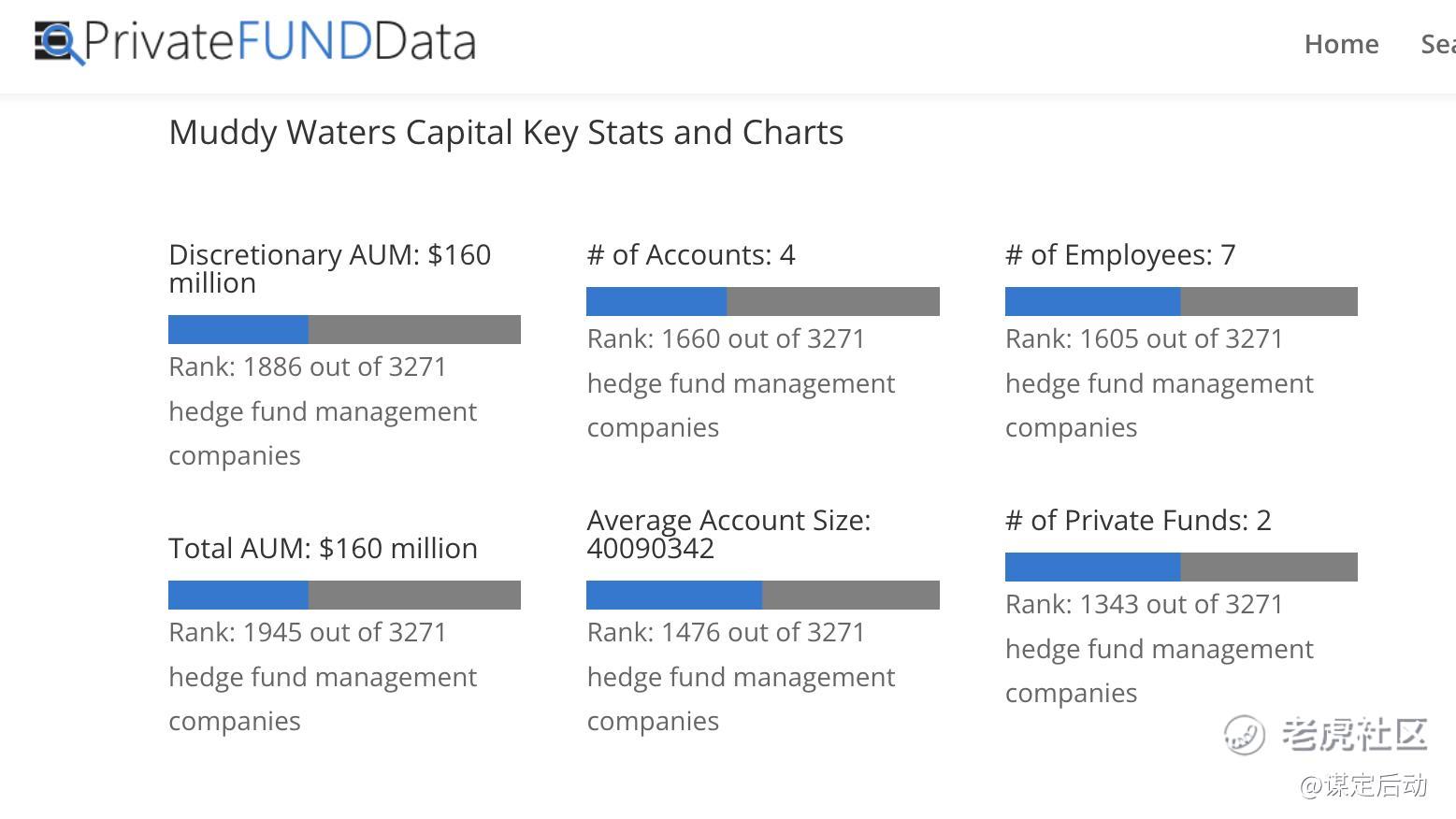 不仅散户很难通过做空赚钱,机构也面临类似的挑战。举例来说,我们可以看看做空机构中有名的浑水公司。这家公司以其成功的做空案例而闻名,曾经成功地做空了东方纸业、辉山乳业、瑞幸咖啡、新东方等中概股,堪称做空领域的巨头。然而,尽管取得了一定的成绩,但浑水公司管理的资产规模只有1亿多美元。