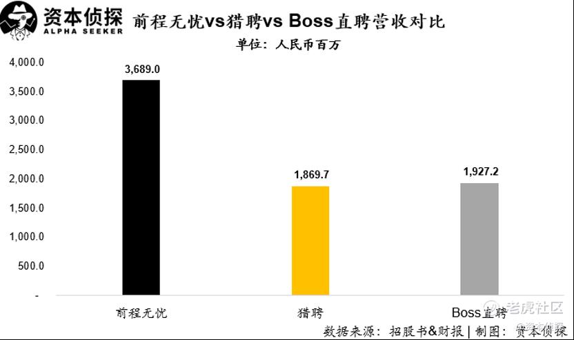 这突如其来的“宠爱”恐怕来自于BOSS直聘持续突破的增速——BOSS直聘目前的营收增速远高于前程无忧和猎聘,这意味着未来更多的可能性。