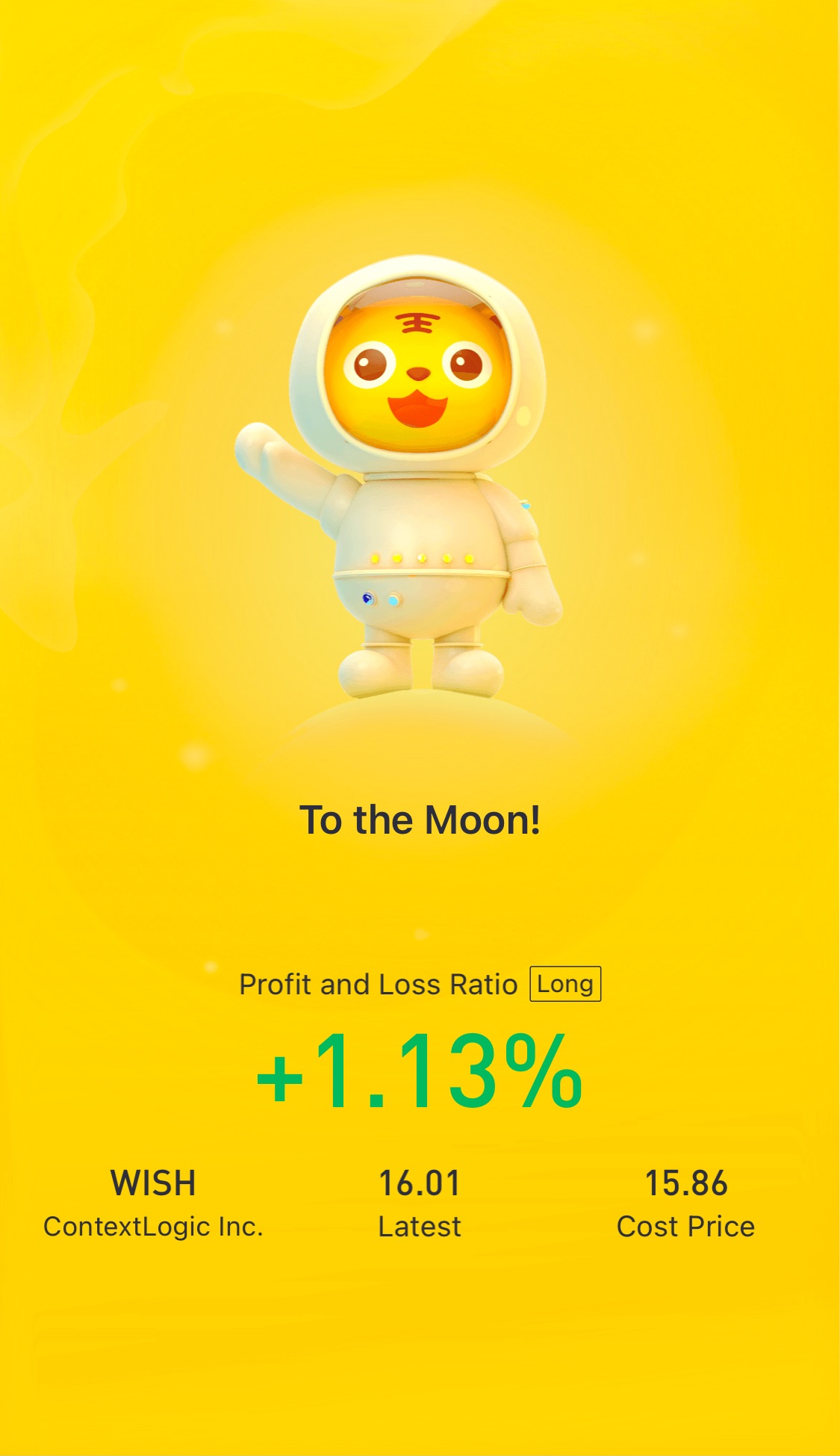 $ContextLogic Inc.(WISH)$Even tiger tellingme to the moon. Say No more 💎🙌
