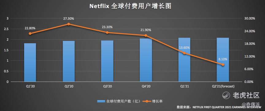 经历了2020年高涨的奈飞,在2021年一季度也难逃会员增长乏力的趋势。