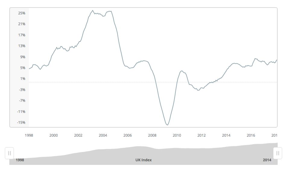 (1998-2017年,曼城房价的变化趋势,图片来源:hometrack)
