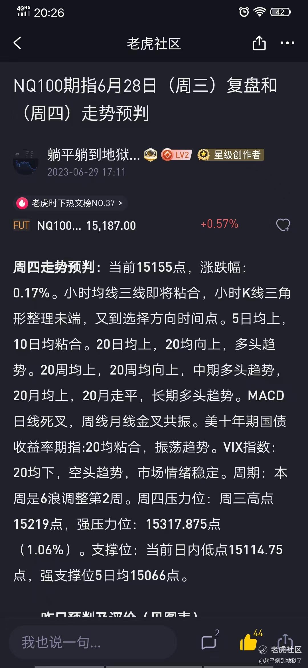 NQ100期指6月29日(周四)复盘和(周五)走势预判
