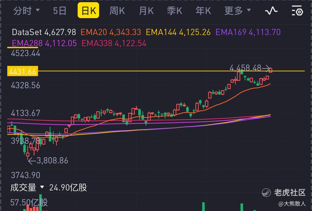 未来的操作,看多,仓位可高一点,每次回踩都可以倒仓,在接近4627前,再谨慎减少一些仓位。