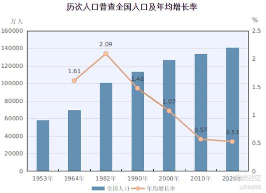 全国人口共14.1亿人,与2010年(第六次人口普查数据)的13.9亿人相比,增加7206万人,增长5.38%,年均增长率为0.53%,比2000年到2010年的年平均增长率0.57%下降0.04个百分点,我国人口过去10年保持低速增长。此前有媒体预言,我国将出现1949年以来总人口的首次下降,但此次统计显示,总人口数上依旧保持正增长,好于市场预期。