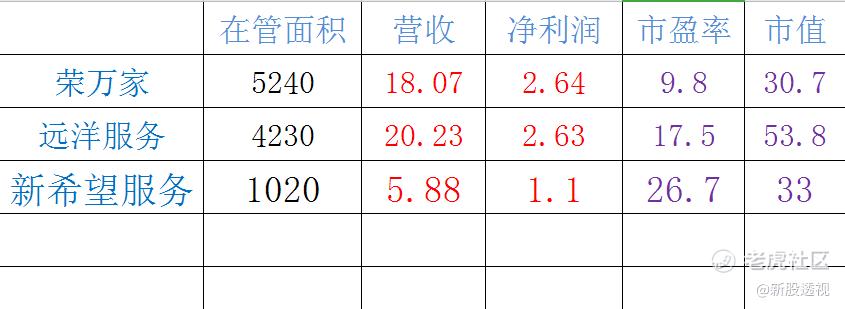 新希望服务此番上市按中间价定价计算市值为33.5亿,市盈率是26.7倍。这个市值与之前上市的荣万家、远洋服务相当。但是,荣万家在管面积是新希望服务的5倍,营收是新希望的3倍,市盈率仅9.8倍。远洋服务在管面积是新希望服务的4倍,营收是新希望的4倍,市盈率为17.57倍。其中荣万家营业收入增速和净利润增速比新希望还要好。荣万家和远洋服务的股价自上市以来一路走低,这样看新希望服务明显不值这个价。