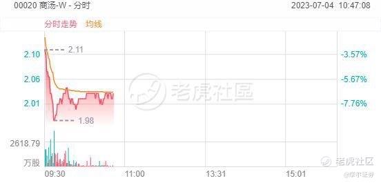 7月4日,$商汤-W(00020)$早盘放量走低,一度跌超9%,股价创7个月来新低;以逾28亿港元成交额成为目前港股成交最大个股。