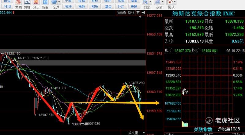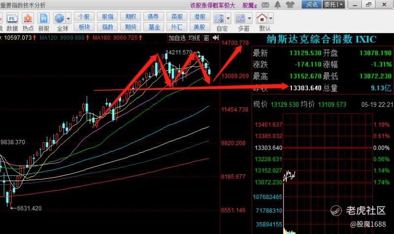$纳斯达克(.IXIC)$ 综合指数周线和30分钟图形分析,纳斯达克应该是对12397.05做回踩呢,12074.065是破位点。13000附近如果是有长下引线以后出大阳,那么还会对新高做冲击,本周还是看跌到什么位置止跌吧。30分钟W底反弹,然后回踩W底的颈线位反弹M头又成立,现在是考验13000了。周线上M头成立现在也是看颈线位的回踩呢,颈线位不破,那么出现长下引线你就可以赌日线级别的反弹。