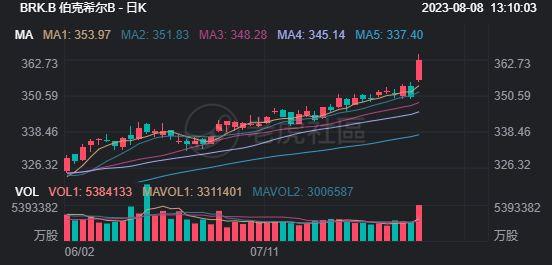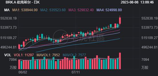 周一(8月7日),“股神”巴菲特旗下的 $伯克希尔(BRK.A)$ 和 $伯克希尔B(BRK.B)$ 股均创下历史新高。