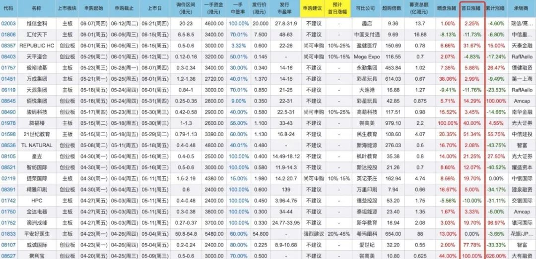 最近这几个月,在港股上市的公司,首日行情⤵️