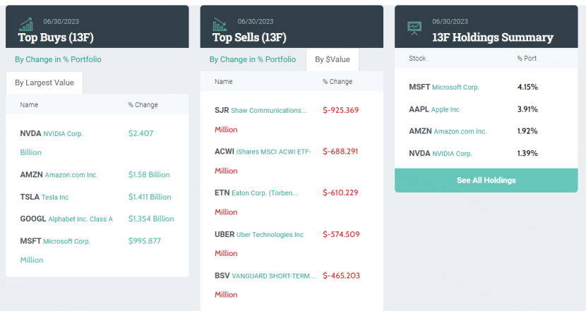 在第二季度,机构的偏好有所不同。有些机构关注更广泛的市场,而其他一些则更关注大型科技股。然而,巴菲特则增持了房地产股,如$D.R.霍顿(DHI)$、$NVR公司(NVR)$和$Lennar(LEN.B)$。