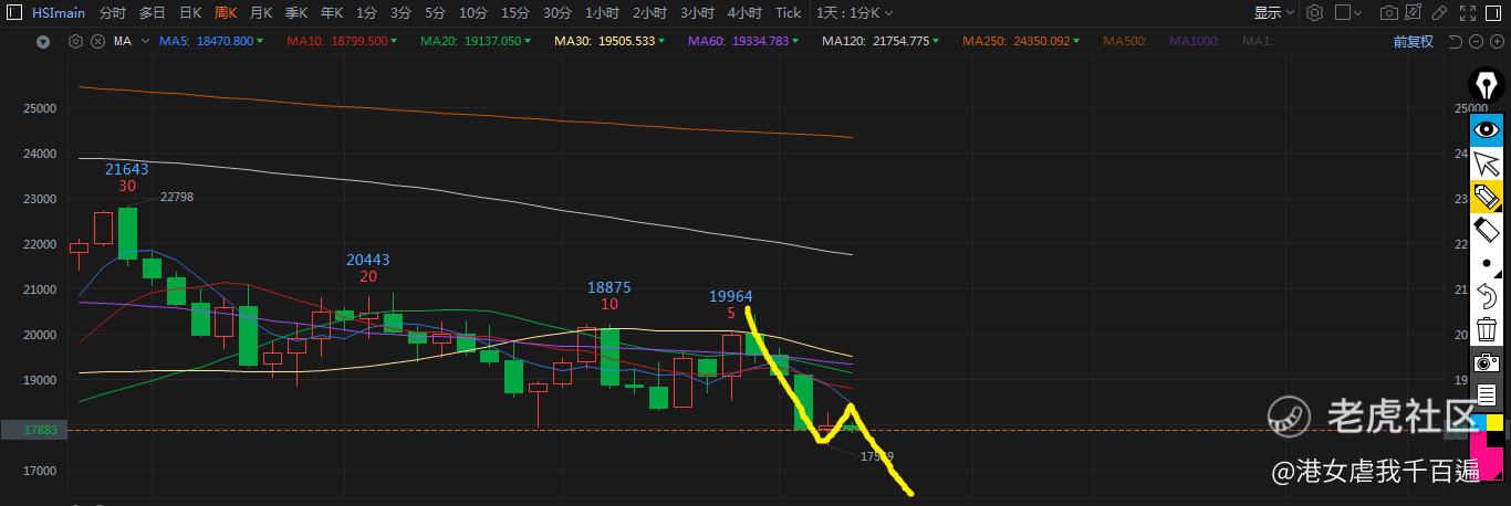 晚上恒指夜期支撑就在17900,破了不V上去的话,下周找175,守住179就是吊着盐水死不去那种状态。而上方压力18030/18200,恒指要绝处逢生,下周必须要冲破这两个位置。而如果看周线,恒指下周在没有大利好刺激的前提下,有机会走出二阴夹一阳,周线MA5的18460是关键位置,恒指如碰到这个压力后倒跌的话,大概率要去找17530/16800支撑,当然如果能碰到18460,距离现在500多点,估计不少多头都减仓逃生了