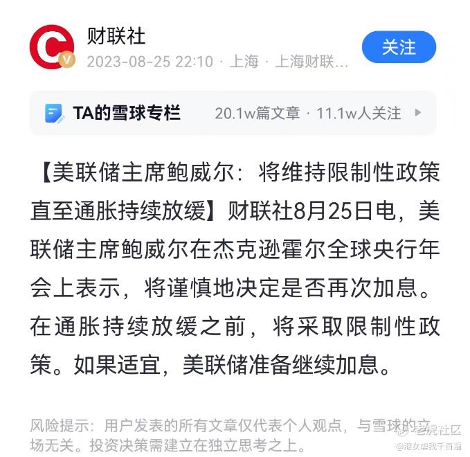 纳指周四晚上的表现再一次大超预期,3%的大阴线包阳,市场都很担忧鲍威尔在杰克逊霍尔会议上的鹰牌讲话,确实现在这会儿也看到鲍威尔如期放鹰:限制性措施继续压制通胀,未来可能再次加息。