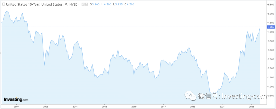 其实,债券市场似乎已经为日后潜在的鹰派货币政策做多了准备,美国基准收益率10年期国债收益率于周二(22日)就攀升到了15年来最高点,达4.366%。
