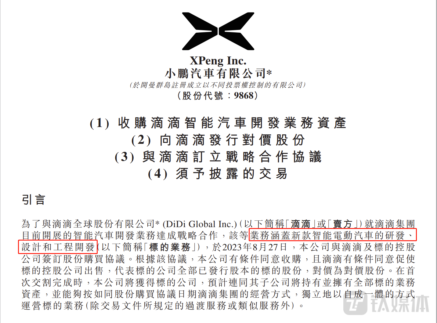 8月28日盘前,小鹏汽车-W(09868.HK)发布公告称,日前已与滴滴签订股份购买协议,双方就后者目前开展的智能汽车开发业务达成战略合作,涵盖新款智能电动汽车的研发、设计和工程开发,交易对价为最高不超过58.35亿港元。