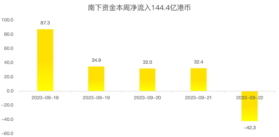 南下资金本周净流入144亿港币,但令人意外的是周五港股大涨之下,南下资金竟然选择获利了结: