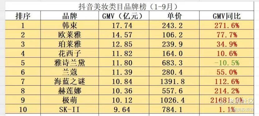 近日,抖音1-9月美妆类目品牌榜出炉。据青眼情报数据,今年1-9月,韩束牢牢占据抖音护肤榜单第一阵营,以17.74亿元的GMV远超欧莱雅。其中,韩束在8月就以超4亿元的GMV成功反超欧莱雅,以近两倍优势拿下护肤类目的断层第一,并在今年9月继续位列抖音美妆品牌榜单第一名。