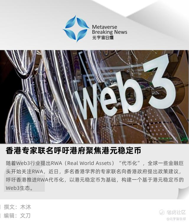 10月11日,香港科技大学副校长、香港 Web3.0 协会首席科学顾问汪扬联合其他专家提出政策建议,呼吁香港着重于虚拟世界和现实世界资产的结合,以港元稳定币为基础,构建一个基于港元稳定币的Web3生态。