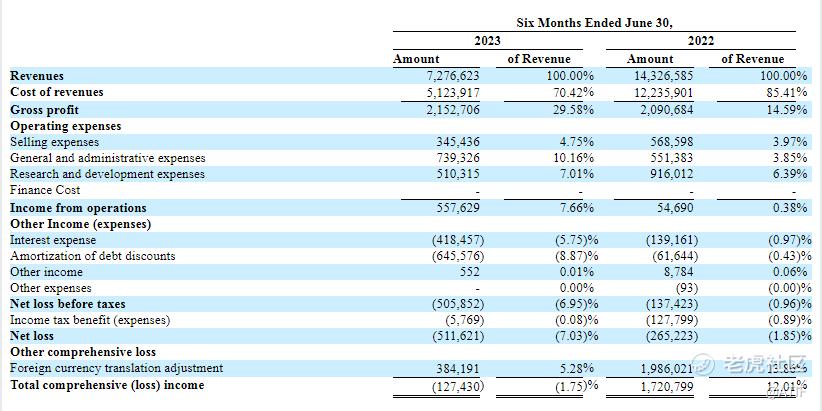 根据招股书披露的信息,截至2023年6月30日和2022年6月30日的六个月比较,诺森的营收为7,276,623美元,上年同期为14,326,585美元。