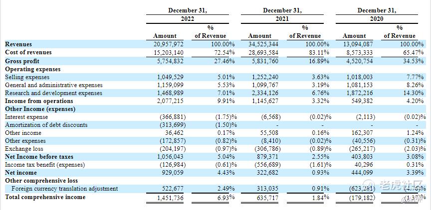 2020-2022年度,该公司的营收分别为13,094,087美元、34,525,344美元、20,957,972美元,这期间相应的净利润分别为444,099美元、322,682美元、929,059美元。