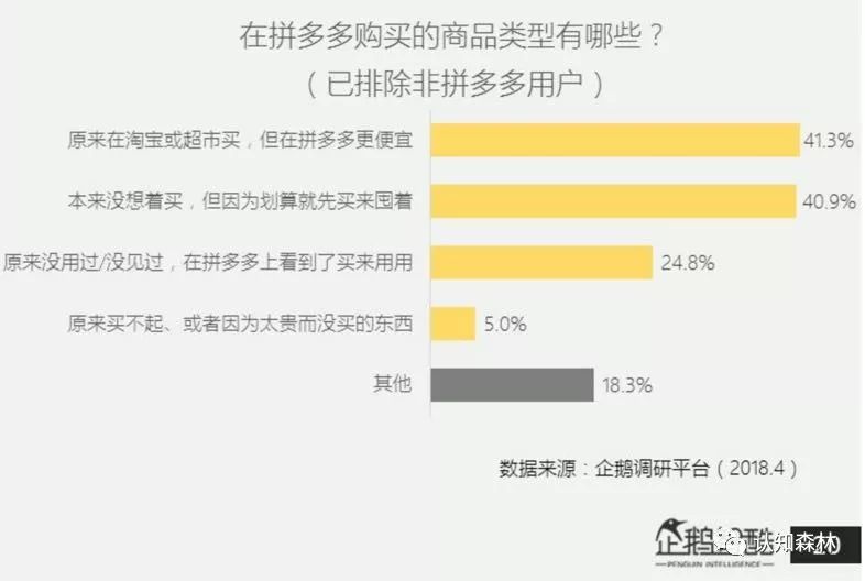 文章最后小编说下自己对拼多多的想法:对于一线城市没事用香奈儿的人来说,用拼多多是消费降级,但是对于三到六线城市的人来说,使用拼多多是消费升级。生活在一二线城市的人不能一开始就想让三到六线城市生活的人接受注重质量和品质的消费观,这需要一个过程,需要类似拼多多这样的平台做活低端供应链和低消人群的生态,只有这样才能让这个生态自活跃起来,才能使这个生态更加繁荣。当然红线肯定是有的,就是商品可以不高端,但是如果危害了低消人群的生命健康,那么平台是无法推卸责任的。从这个角度看,或许我们应该给拼多多一些鼓励和支持,毕竟保证如此大规模低端供应链的产品安全是一件很有挑战的事情,连阿里和京东都放弃了,此处应该有十秒钟的掌声。