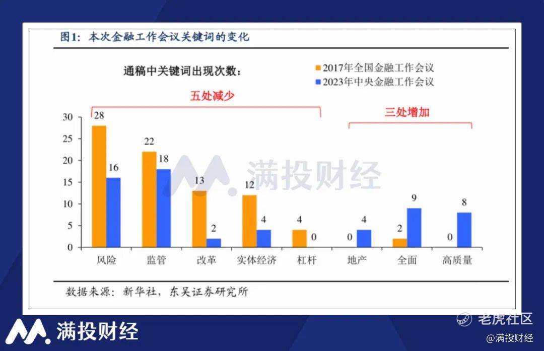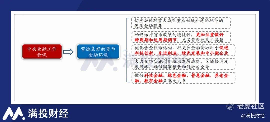 行业方面,会议提及将科技金融、绿色金融、普惠金融、养老金融、数字金融列为货币政策需要重点做好的五大篇章,提出注重做好跨周期和逆周期调节等政策方向。相较于2017年,本次的会议注重于货币政策对高质量发展重点领域的支持上,包括、“股票发行注册制”“多元化股权融资”“上市公司质量”“一流投资银行和投资机构”“债券市场”等领域,均被视为高质量发展所需的手段。