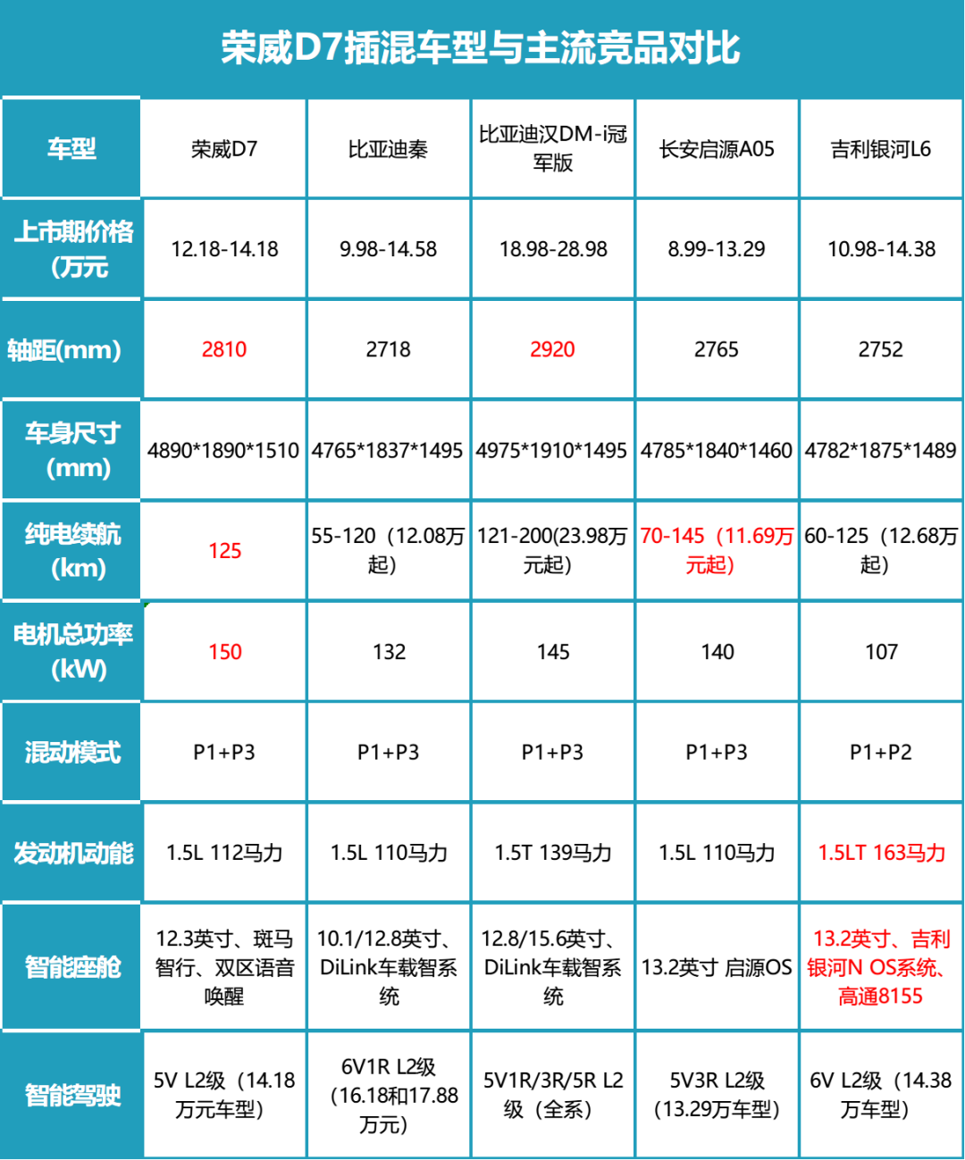 空间、续航和价格的结合错位优势,是荣威D7参与竞争的关键。