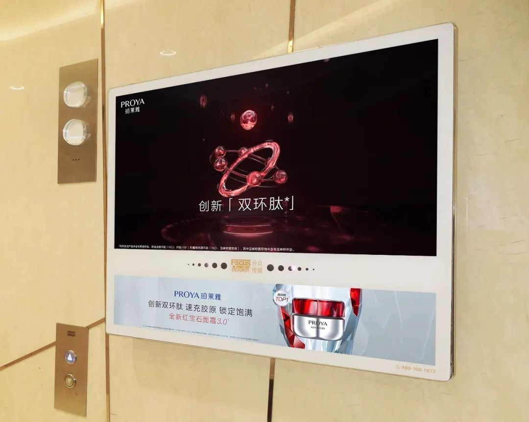薇诺娜早在2019年便开始大规模投放分众梯媒,多次携手旗下特护霜、特护精华等爆品高频刷屏城市主流消费者必经的生活场景,持续传递品牌“专注敏感肌肤”的差异化优势,不断筑高品牌力;珀莱雅也在今年加大了对分众梯媒的投放力度,特别是双11前夕,携手旗下大单品——早C晚A组合版、双抗精华以及全新升级的红宝石面霜3.0先后刷屏分众,为双11造势;今年名气火爆的且初、觅光、极萌也纷纷携主推爆品刷屏分众,抓住线上走红的关键时间窗口,趁热打铁、扩大品牌优势。