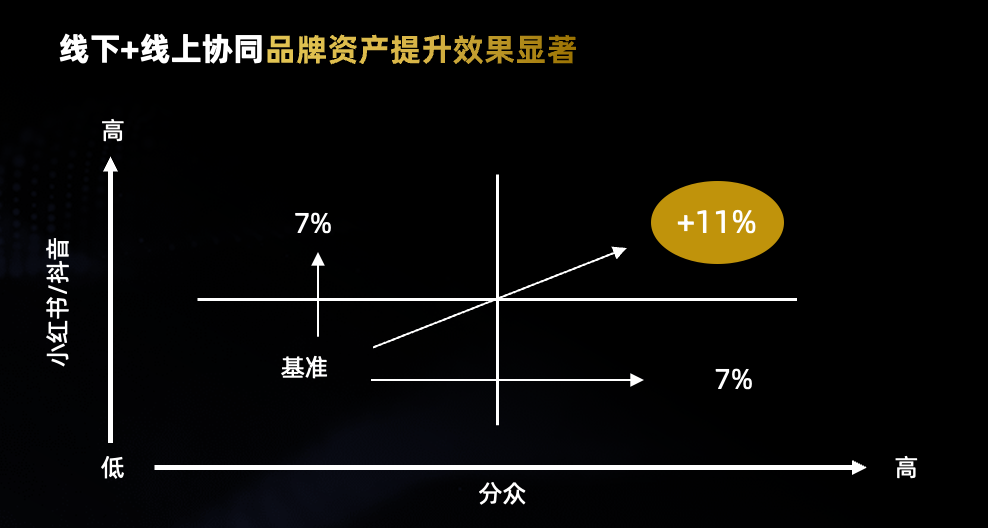 在线上,以抖音/小红书为代表的社交媒体擅长通过内容话题种草,帮助品牌建立与消费者的情感连接,满足消费者的情感需求。有了一定的市场基础后,品牌要从流量网红转为长红品牌,扩大品牌资产的广度和深度,通过以分众为代表的线下梯媒,结合线下人群场景进行传播引爆,构建品牌社会共识,让品牌快速占领心智,最终穿透人心。