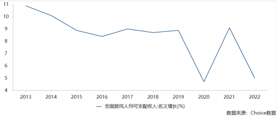 2011年以来每年的CPI增速大约在2%左右,而人均可支配收入的名义增速7.2%,从这两个数据看,收入增速远远超过物价增速。