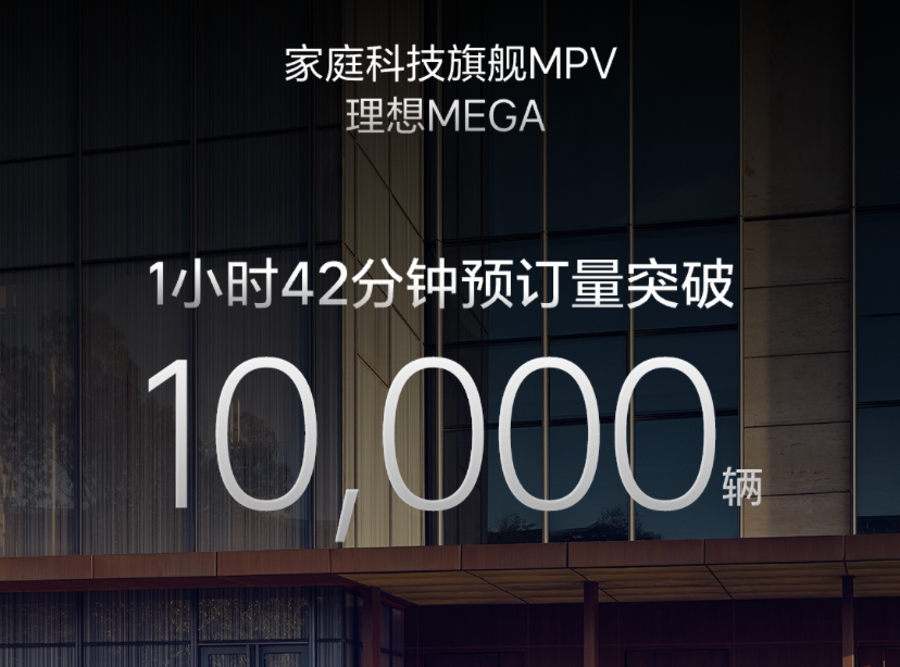 从市场反馈来看还不错。根据理想方面数据,理想MEGA仅用1小时42分钟预订量即突破1万辆。