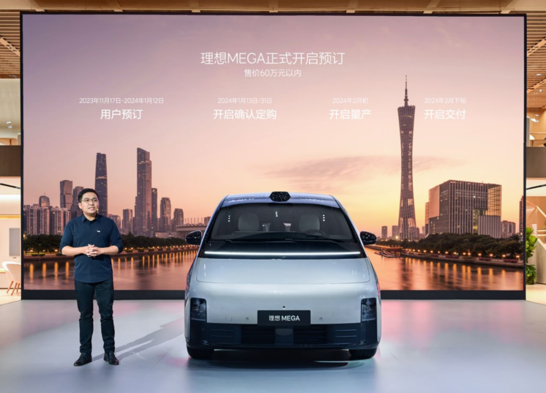 根据刘杰介绍,理想MEGA于广州车展开启预订,预计售价60万元以内;将于12月正式发布;2024年1月试驾车进店,将开启锁单,并按照预订顺序进行优先排产;明年2月正式开启量产和用户交付。
