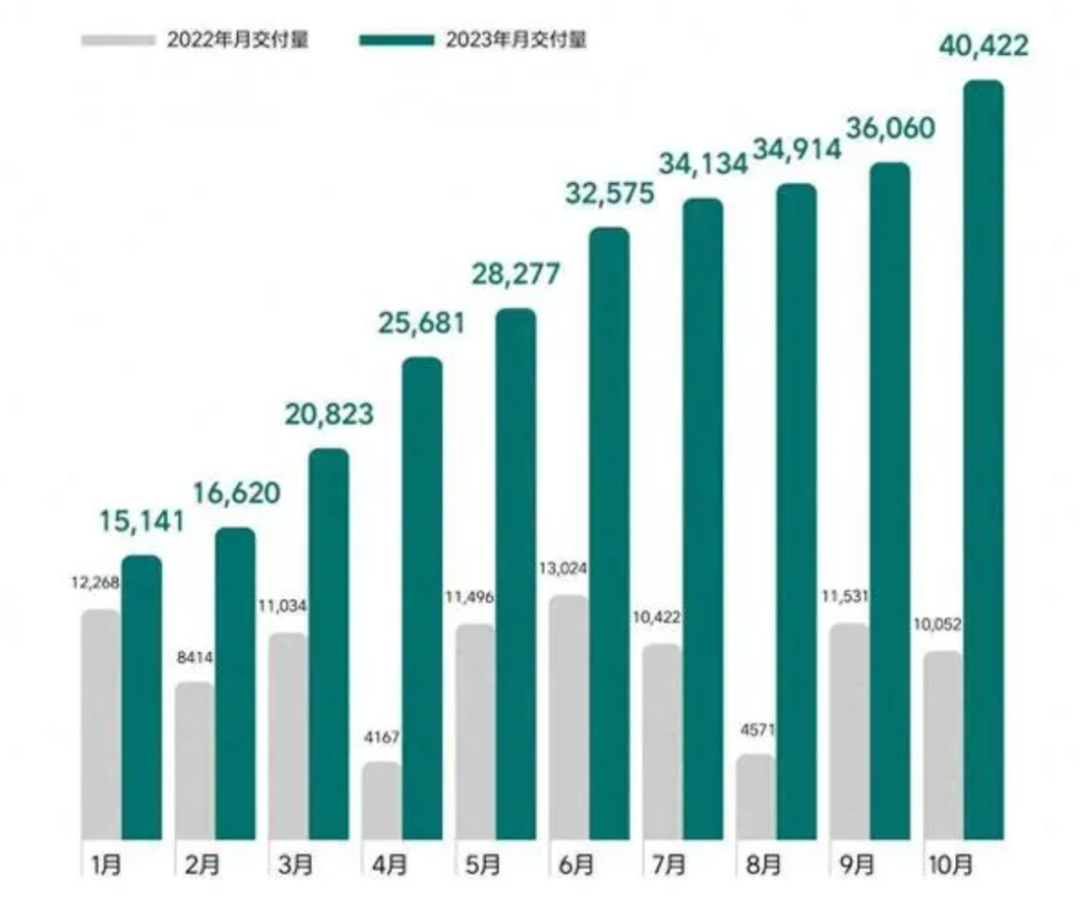 今年10月,理想汽车月交付量超过4万辆,达4.04万辆;
