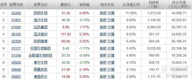 拿代表国内创新药重要力量的指数——港股创新药ETF来说,截至今年三季度,它的前十大重仓股如下图所示。