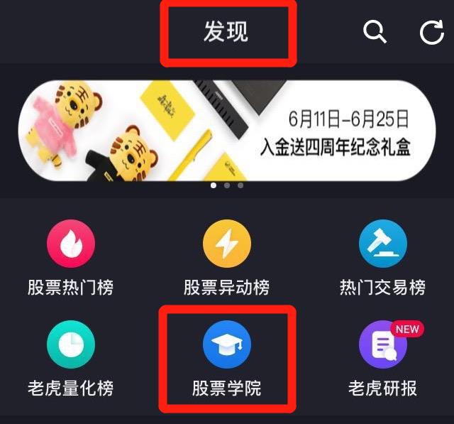 - 进入发现页面—点击股票学院