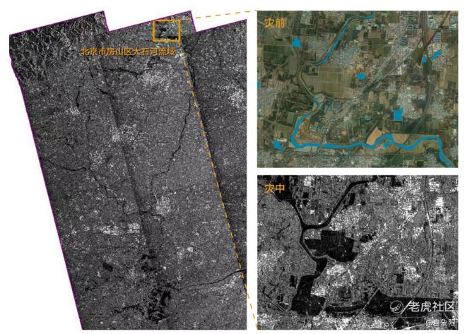 ▲涿州暴雨时,天仪研究院涪陵一号卫星提供的SAR卫星影像