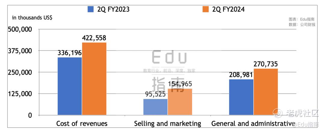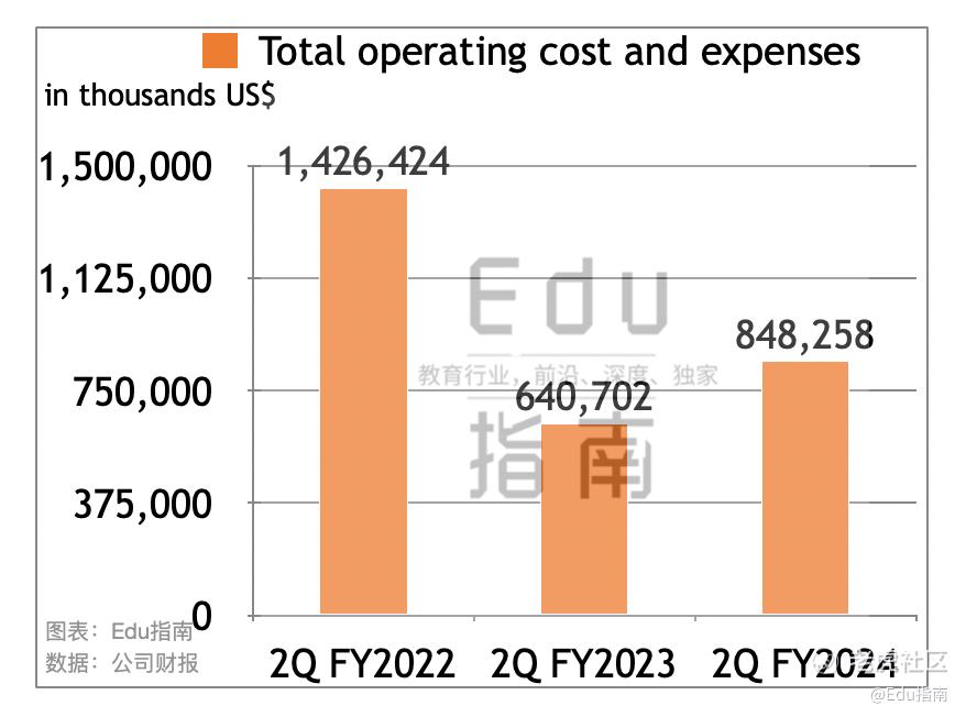 其中本季度新东方收入成本为4.2亿美元,相较上一财年同期的3.4亿美元,本季度该成本增幅为26%。