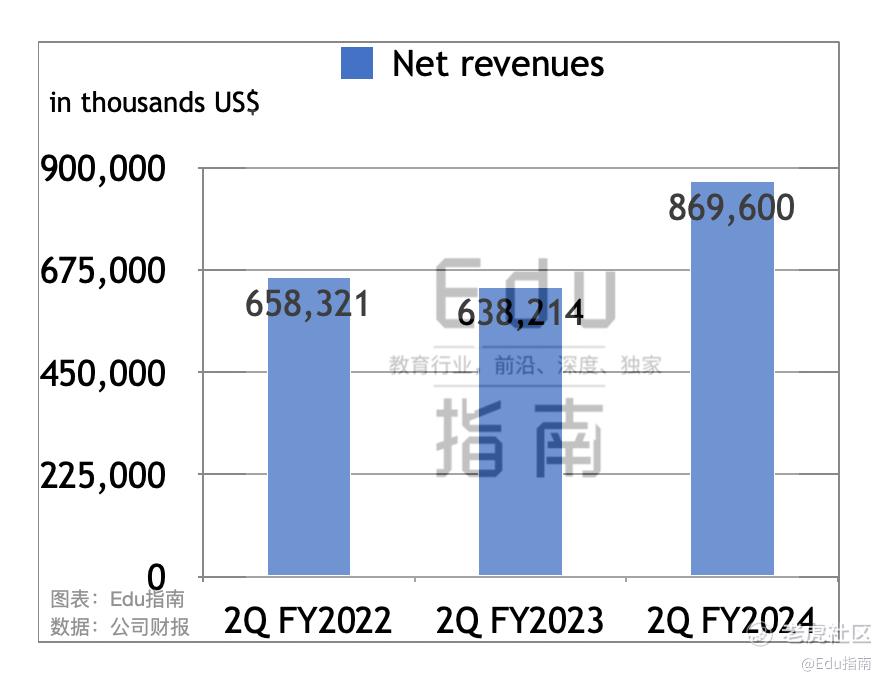 根据季报,新东方公司2024财年Q2收入为8.7亿美元,同比上一财年同期的6.4亿美元,增长36%。该公司2023财年Q2同比2022财年同期收入减少3.1%。本季度同比收入由下降转为增长。