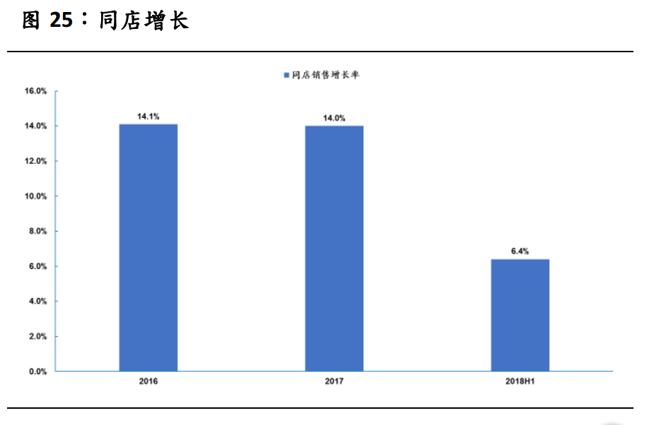 伴随着最近几年的翻台率以及人均开支的增长,同店销售在16年和17年增速很快,超过14%,其中翻台率增长贡献的更大。随着翻台率接近于天花板,同店增速也在18年上半年迅速掉到了6.4%的增速。笔者认为未来海底捞的同店增速会逐渐放缓接近通胀水平。